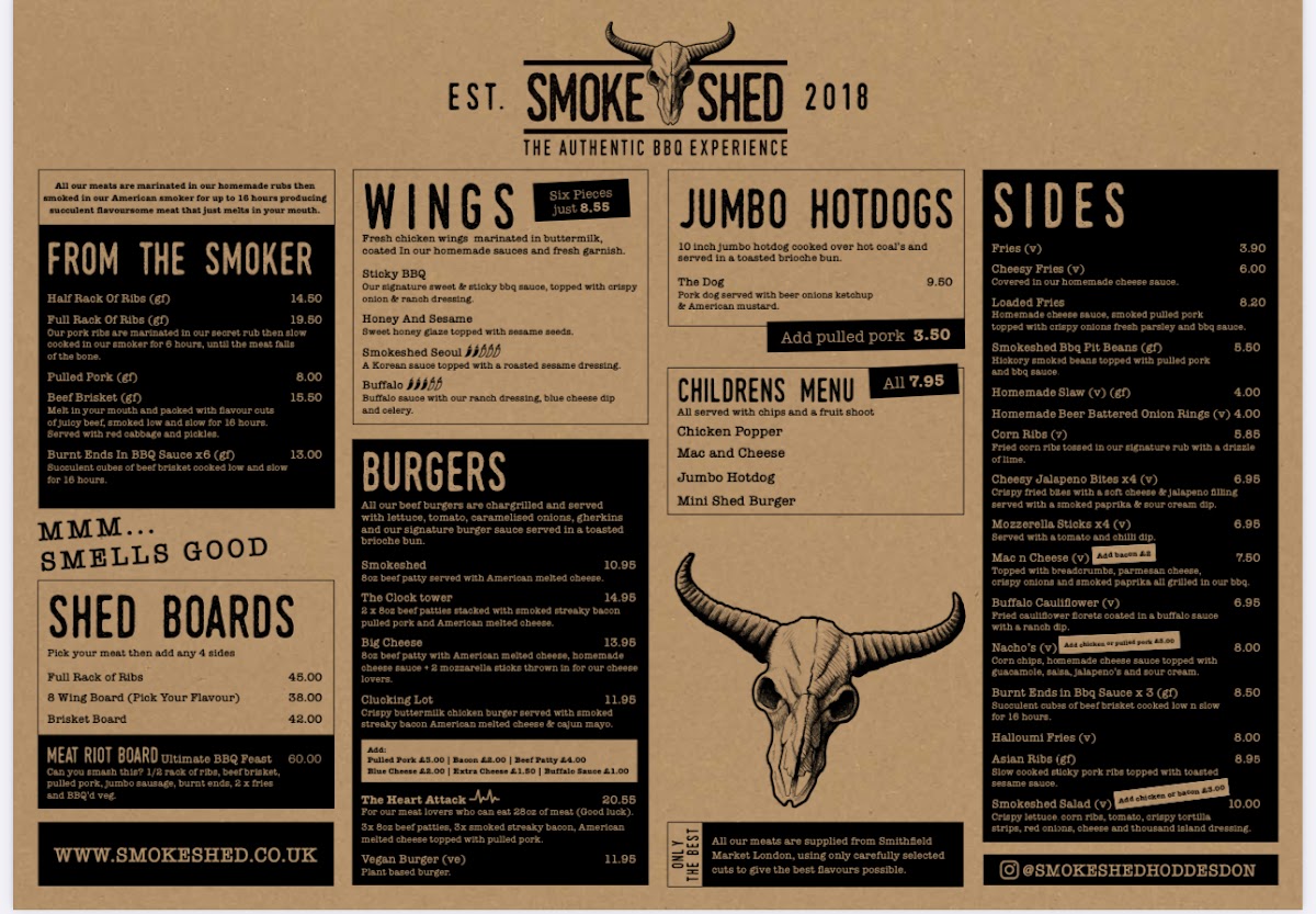Welcome to the Smokeshed Bar and Grill Hoddesdon, where authentic American BBQ meets an inviting atmosphere. Situated in Hoddesdon, England, this gem offers a menu that celebrates smoky flavors and hearty portions. Diners rave about the fall-off-the-bone ribs and tender brisket, with each dish resonating with that traditional smoky essence. The inventive corn ribs have garnered a surprising fan base, even inspiring home-cook attempts!